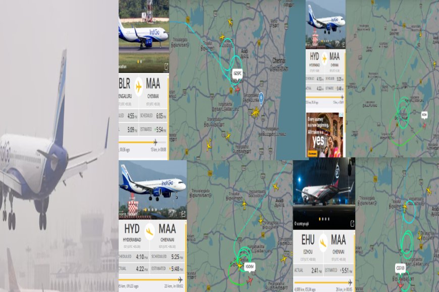 குறிப்பாக, பாட்னாவில் இருந்து சென்னை , டெல்லியில் இருந்து சென்னை, பெங்களூரில் இருந்து சென்னை, கோயம்புத்தூரில் இருந்து சென்னை, இந்தூரில் இருந்து சென்னை, ஹைதராபாத்தில் இருந்து சென்னை, கொல்கத்தாவில் இருந்து சென்னை என 8 இண்டிகோ பயணிகள் விமானம் வானத்தில் வட்டமடித்துக் கொண்டிருக்கின்றன.