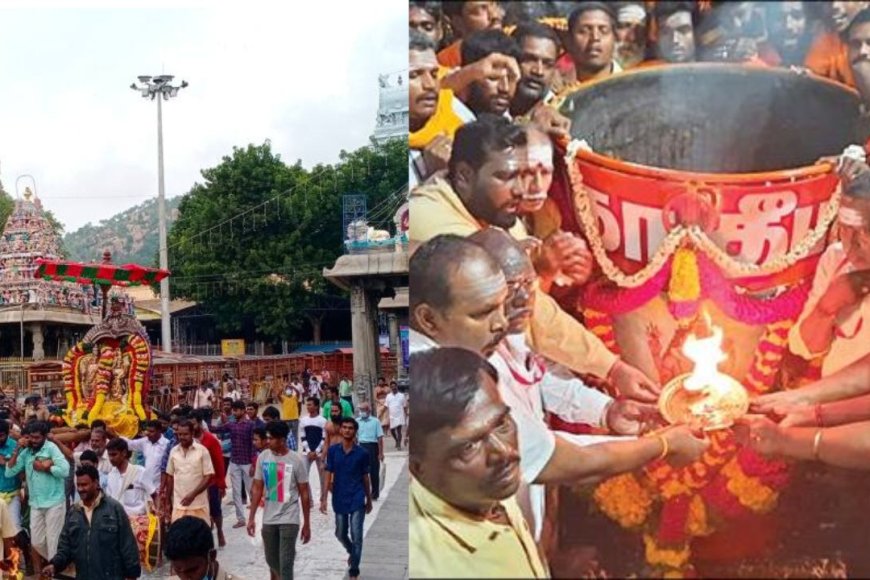 சுமார் 200 கிலோ எடையுள்ள தீப கொப்பரையை, திருப்பணியாளர்கள் தோளில் சுமந்தபடி மலை உச்சிக்கு கொண்டு சென்றனர். திருவண்ணாமலை நகரம் மற்றும் கிரிவலப் பாதை முழுவதும் கண்காணிப்பு கேமராக்கள் பொருத்தப்பட்டு கட்டுப்பாட்டு அறை அமைத்து கண்காணிப்பு பணிகள் நடைபெற்று வருகிறது. அருணாசலேஸ்வரர் கோவில் மற்றும் கிரிவலப்பாதையில் சிறப்பு மருத்துவ முகாம்கள் அமைக்கப்பட்டுள்ளன.