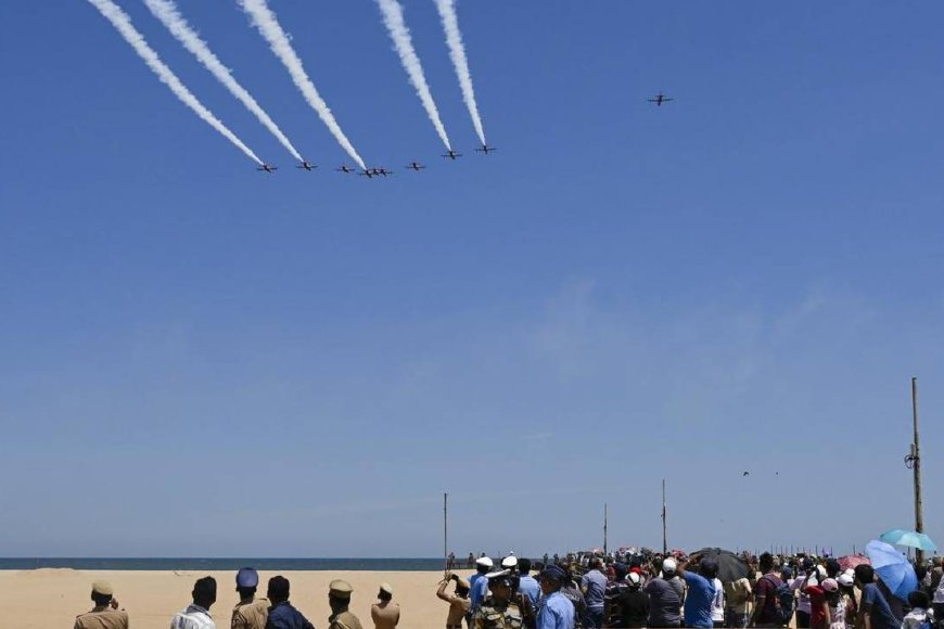 இந்திய விமானப்படை தொடங்கப்பட்டு 92 ஆண்டுகள் நிறைவடைந்து 93 ஆம் ஆண்டில் அடியெடுத்து வைத்துள்ளது. இதைக் கொண்டாடும் வகையில், சென்னையில் இன்று மிகப் பிரமாண்ட விமான வான் சாகச நிகழ்ச்சி நடைபெறுகிறது. மெரினா கடற்கரையில் காலை 11 மணிக்கு தொடங்கியது.