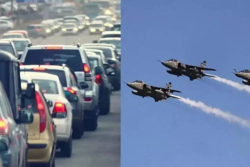 சென்னை மெரினா கடற்கரையில் விமானப்படையின் வான் சாகத்தை காண லட்சக் கணக்கான மக்கள் குவிந்ததால் கமராஜர் சாலை, அண்ணா சாலையில் கடும் போக்குவரத்து நெரிசல் ஏற்பட்டது.