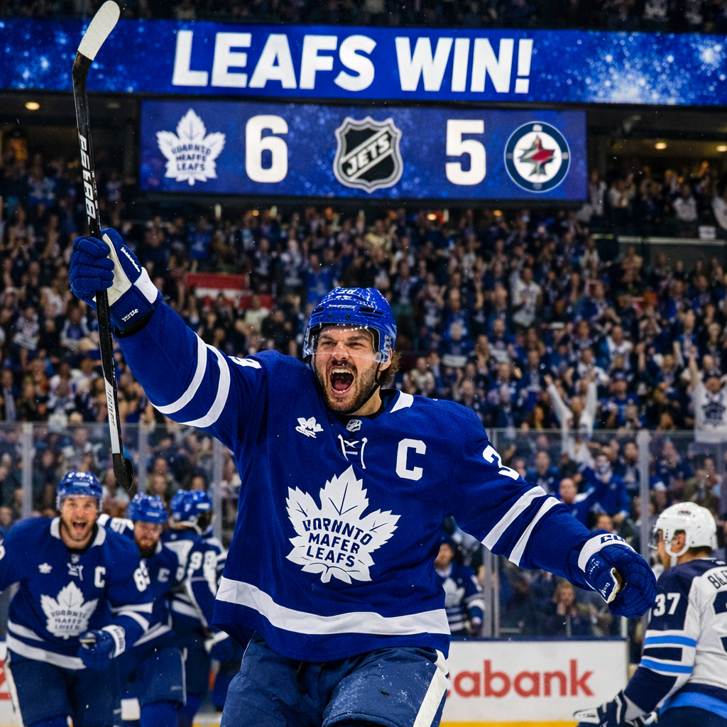 Toronto, Jan 2, 2026Auston Matthews delivered a sensational performance to kick off the new year, scoring a hat trick and adding an assist as the **Toronto Maple Leafs rallied from a three-goal deficit to defeat the Winnipeg Jets 6–5 in a dramatic NHL showdown at Scotiabank Arena.
